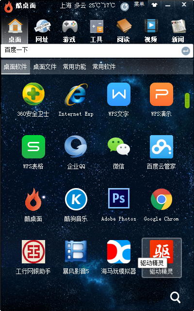 酷桌面官方版是一款电脑桌面管理软件。酷桌面不仅拥有海量酷炫的桌面主题和壁纸,还拥有生活中常用的多种功能,如:日历、天气、健康管理、记事本等,让桌面焕然一新的同时,也如百宝箱般万能。
