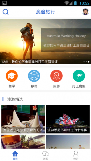 澳途网主要提供澳大利亚旅游、留学、移民、打工度假相关方面的教程和攻略,并且是国内以打工度假为主题的交流分享社区之一,在这里你可以和其它的会员分享你在澳洲生活的点点滴滴,也可以在这约伴一同探索澳洲。【更新日志】