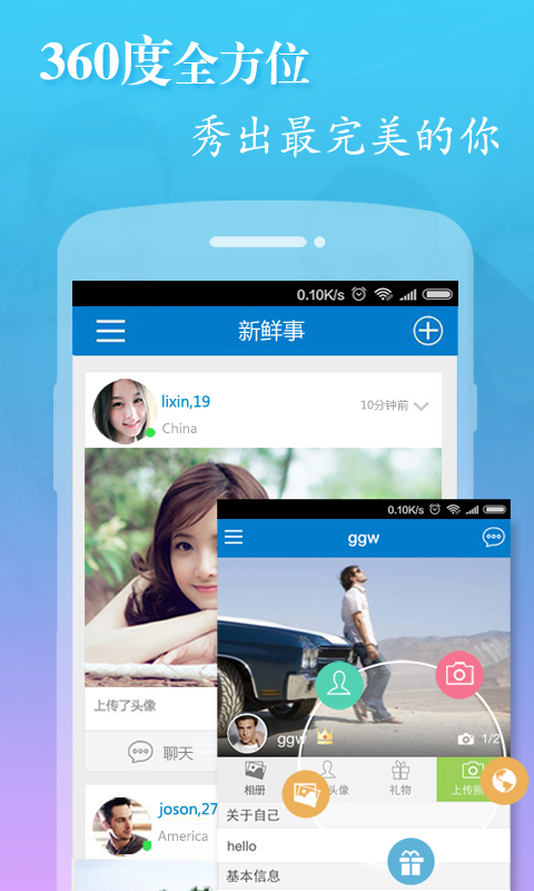 4)360度全方位秀出最完美的你:在Perdateapp,你可以制作特色头像,建立个人相册,设置个性签名,展示年龄、职业、兴趣爱好、交友宣言、感情状态等等个人信息,为自己赢得更多的曝光率。
