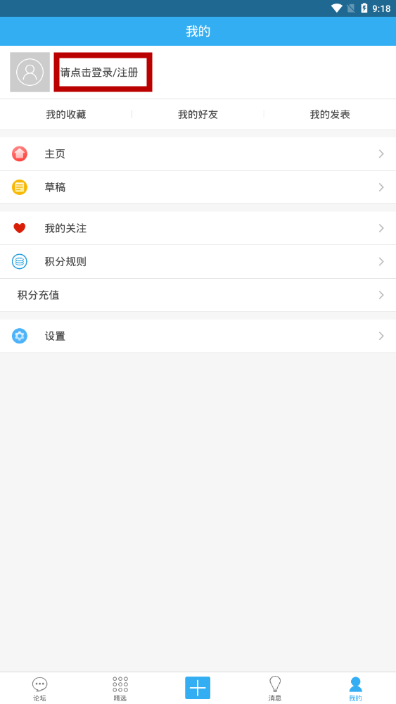 2、进入“我的”功能页面,点击红色框内的按钮进行登录。