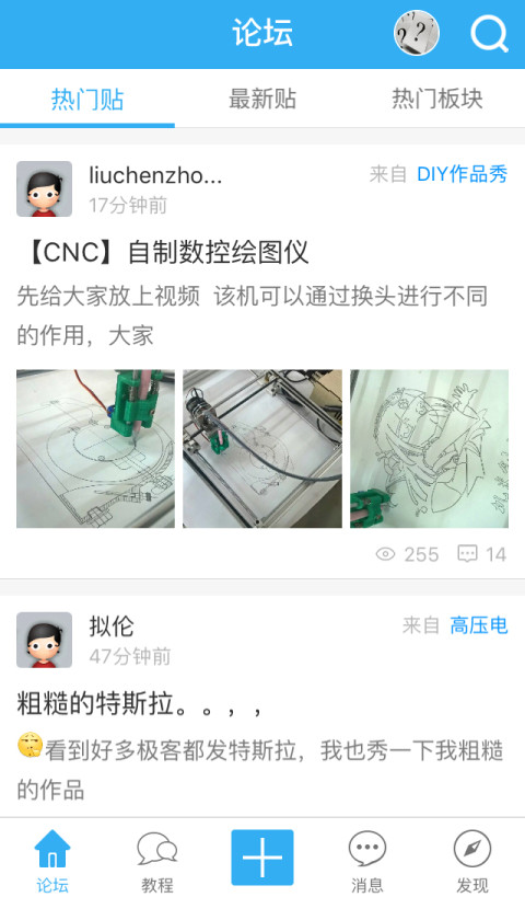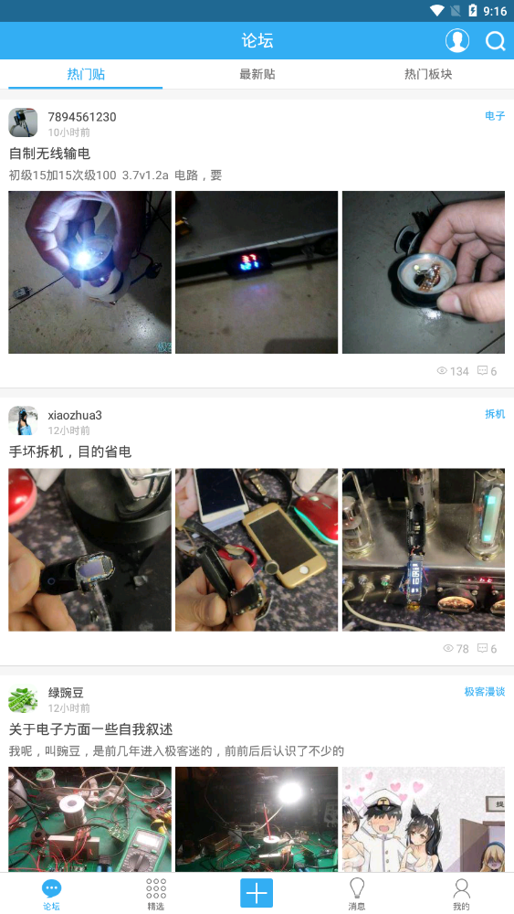 1、进入到极客迷app的主界面之后,我们会看到很多的帖子。