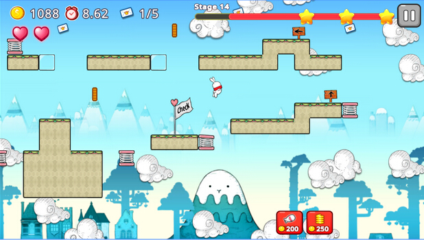 跳跳世界(Jumping World)是一款玩法基于重力感应的横版跳跃类冒险类游戏。游戏中你将操控着小兔子不断地闯关各种障碍物,玩起来相当的不错哦!游戏中有数十种各式各样的物品还有陷阱,利用物品来帮助小兔子越过陷阱,成功把邮件投入邮箱就算挑战成功。游戏有150个以上的普通关卡和隐藏的关卡等你来挑战!