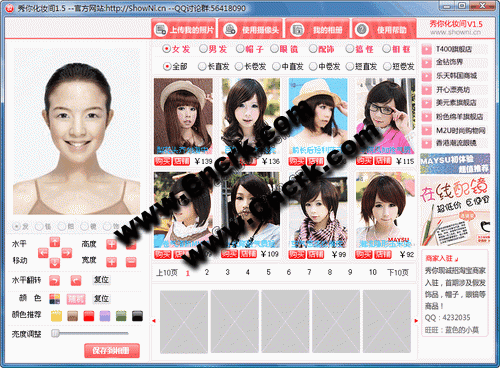 秀你化妆间 V1.6 简体中文绿色免费版 引领时尚潮流,你做自己的形象设计师,上传自己的照片,您就可以在这里 试戴假发、帽子、眼镜和精美饰品,购买前就可以轻松的挑选到真正适合您风格的 商品。同时您也可以对图片进行美化,添加搞笑图片,精美相框。将购物和娱乐 结合,就是秀你化妆间带给您的不同体验。秀你,等您来秀!