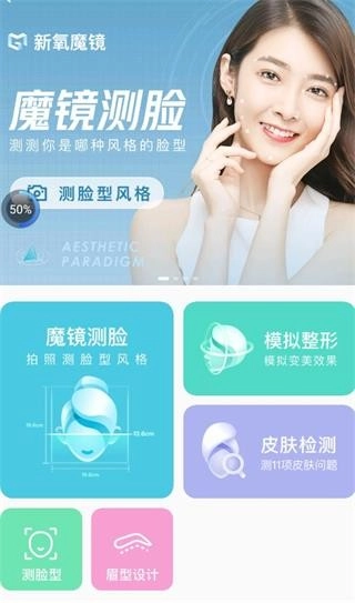 2进入应用后,在主界面的中间位置能找到名为“新氧魔镜”的功能选项,点击该选项就能开启测试流程。