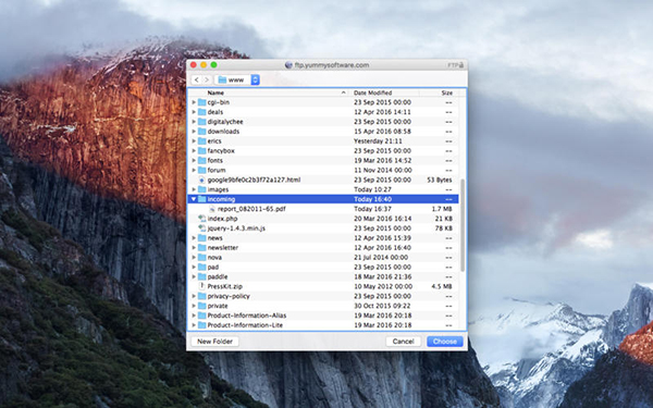 另外,因其上传是由备受赞誉的YummyFTP程序的文件传输引擎提供的动力,所以是可保证您所期待的传输速度和可靠性的。