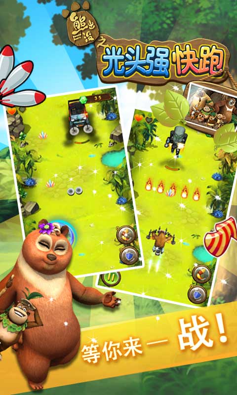 熊出没之光头强快跑是一款刺激冒险体验的射击类游戏,游戏以经典动画熊出没为设计理念,玩家将与熊大熊二一起对抗光头,一定要阻止光头强砍伐森林,让光头强再一次落荒而逃!竖版炫酷射击,超多座驾选择,全新主题射击游戏,熊出没来袭!暴击惊险刺激的冒险之旅!挑战更多场景更多关卡!趣味更多场景更多关卡!期待更多挑战稍后上线!