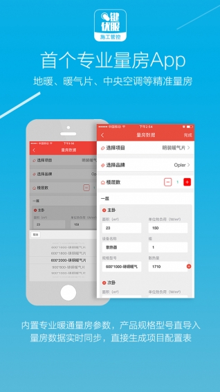 App预设不同暖通项目差异化量房参数