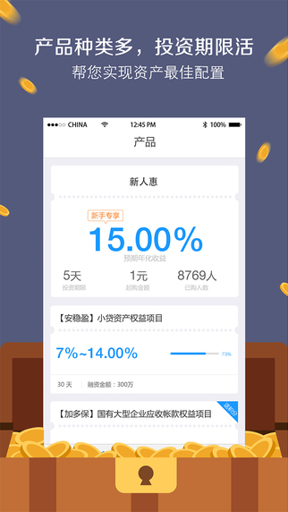 1元起即可投资理财产品,高达50倍银行活期存款收益;