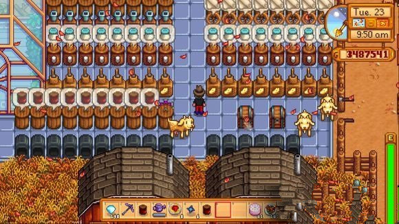5、1.剩下来的就是该下矿的下矿,该钓鱼的钓鱼,下雨天矿洞下面的湖钓鱼可以钓到鱼王。可以钓N只,只要你钓鱼技术好(记得买减速的渔具啊)2.记得每天看天气预报,如果提示明天下雨,直接把今天的水浇完之后,直接拿5个铜锭+2000块钱把水壶先升级到铜的。因为明天不用浇水,后天直接可以拿铜的浇水了3.升级顺序按照铜水壶>铜斧子=铜矿稿,铁斧子=铁矿稿,水壶和锄头就不用在升级了(有矿搞就下矿,没矿搞就钓鱼,砍木头)4.牧场前期不要开,成效太慢了(投资7000,建造4000+3天,买崽3200+3-4天成年,还要花材料去做蛋黄酱机,差不多要20天左右才能回本,然后才开始赚钱,等牧场开始赚钱的时候,黄花菜都凉了)