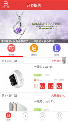 3.【开心摇奖】参与我的任务及赚取拍币获得的拍币奖励,用户可用拍币报名参加开心摇奖,当走马灯中显示当前报名人数及当前已报名人数时,用户可点击报名参加并选取五等奖;