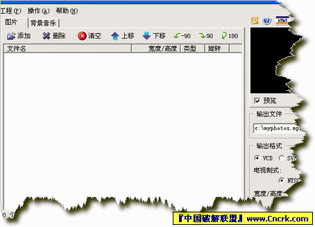 Photo to VCD SVCD DVD Converter V1.8 绿色版 软件拥有下列功能:转换图片为带音频的视频剪辑,可选择MP3或WAV格式的背景音乐,可选的155种图片切换效果,可以设置每幅图片的显示时间,转换之前可以预览视频和音频效果,专业但友好的用户界面使您可以快速上手。