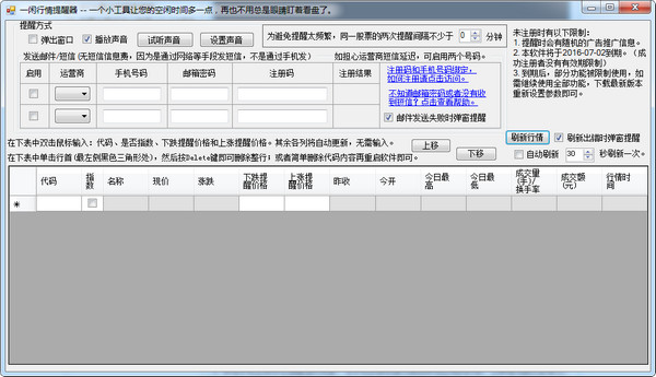 一闲行情提醒器是一款股票价格提醒软件,它能让您的炒股生活变得空闲一点,再也不用总是眼睛盯着看盘了。一闲行情提醒器可在各个Windows系统中运行,兼容性很强,适合炒股的朋友使用!【软件特点】