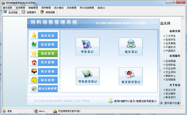 3、销售管理:产品零售、产品批发、销售退货(零售退货、批发退货);