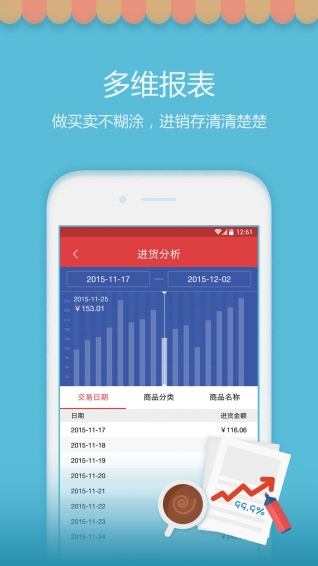 进货、出货、仓库和毛利四个维度分析生意的运营情况。用户轻松的通过报表的二级维度查询各种详细的交易情况。