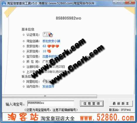 淘宝买卖信誉查询工具5.0是一款交易查询软件,只需输入对方登陆用户名即可查询!