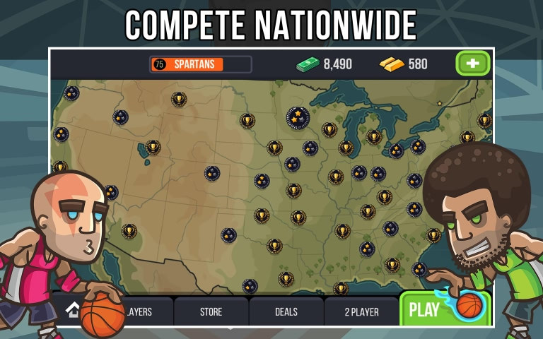 篮球战役是一款篮球竞技类游戏,游戏的玩法采用一对一斗牛的形式,玩家在游戏中将与电脑AI进行对决,你要操作人物的奔跑跳跃,避开对手的阻拦,进入内场将球投入篮筐中。