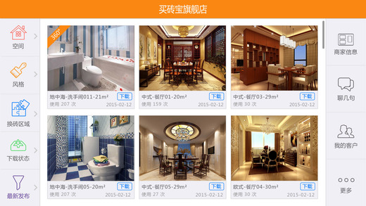 买砖宝手机版是由买砖宝团队根据瓷砖行业消费特点以及瓷砖商家销售痛点,自主研发的互联网应用产品。买砖宝手机版无论是在线上商城还是在线下实体店,都可以通过买砖宝挑选到自己喜欢的瓷砖产品。对于瓷砖商家,通过买砖宝可更好的进行瓷砖的虚拟展示,还可向特定业主发送体验账号,记录业主信息,既提升了商家订单的转化率,也增强了业主的消费参与感。【软件特点】
