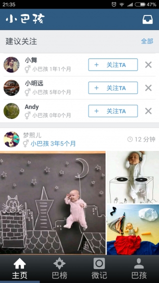 【社交与搜索】融合年轻家庭社交元素,小巴孩能够让你在任何时间碎片都很方便与他人一起分享宝贝的成长故事、一起交流互动并增进感情
