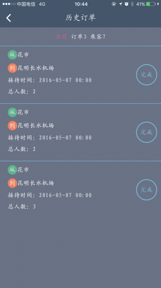 司机端主要功能:1、订单服务,通过移动位置技术,自动记录车辆的位置、状态,高效的实现订单推送和跟踪,提高司机的服务效率,降低空驶率。