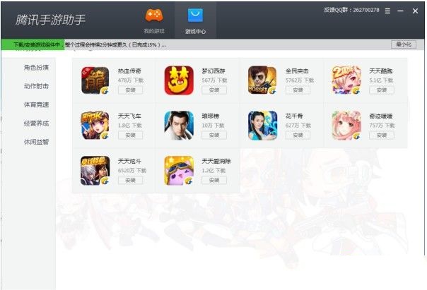 5、打开腾讯手游助手界面,耐心等待组件下载和安装