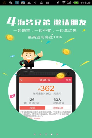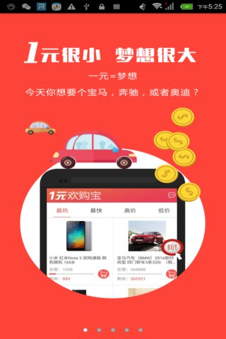 为什么选择1元欢购宝app?一元钱能买到啥?我们来告诉您,一元钱什么都可以买得到,抢购全网热销商品,天天有惊喜,红包送不停满100还可以提现!!一元欢购宝网覆盖淘宝、京东、天猫、一号店等几十家大众购物平台的热销商品,一元购手机、一元购翡翠玉石、一元购宝马等。