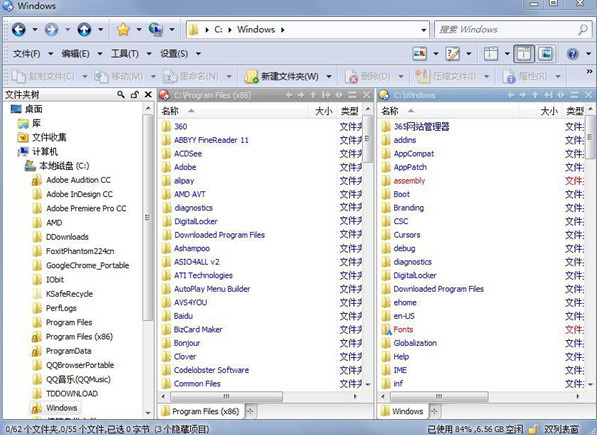 1.程序在支持包括复制,移动,删除,更名,查找,搜索,浏览,压缩,解压缩,分割,合并,直接发送邮件,压缩后发送邮件,打印,创建快捷方式等常用文件操作功能的基础上对以上的功能进行大幅度的增强,设置了多种匹配条件和功能选项,让管理更加轻松自如,非常方便的设计,个人感觉在这点上比Total commander做的更好!^_^