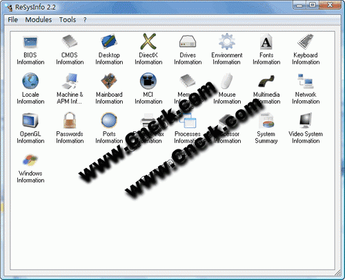 ReSysInfo V2.2.0 英文绿色免费版 ReSysInfo是一个独立的程序(不用安装) ,显示有关您的电脑配置和硬件规格细节。这些信息被组织成类,包括对你的主板的BIOS,网络设置,视频系统,内存,CPU,系统总结和更多 - 共有25模块的详细资料。您可以查看,复制或打印的资料,以及创造文本,HTML或XML格式的自定义报告