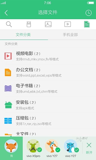 互传是vivo为用户精心开发的一款零流量文件传输利器,通过它可以极速的分享音乐、视频、应用、图片等到其它手机上去,其中一键换机可以直接克隆旧手机数据到新手机上。