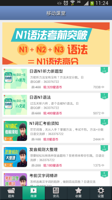 5.新添加微课功能,每讲课都有经典的名师讲解经典课程,该课程以不超过十分钟每节的名师课堂,引领外语在线学习进入新时代!
