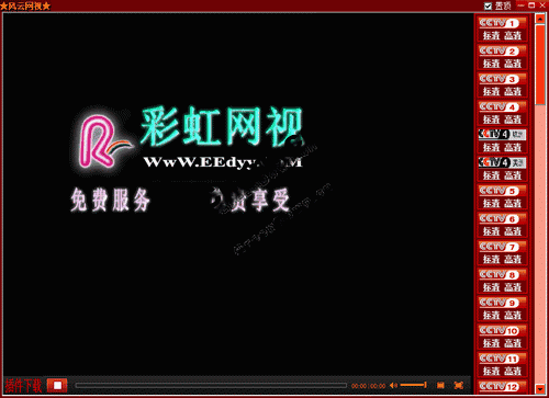 风云网络电视机V2010珍藏版电影,电视,音乐,电台,迪高,等娱乐节目——应有尽有! ◆软件优势: ◎双模(SP+P2P)双播(直播+点播)技术完美结合,既继承了P2P网络电视越看越流畅,人越多越快的优点!同时集成了传统SP流直播快捷易用的特点; ◎独家配备完善的节目中心和专业的节目维护队伍,24小时开启频道监测系统,对节目实时检测,采用用户端节目与服务器端实时更新技术,保证节目高速稳定,清晰流畅,让用户尽享观看网络电视的乐趣; ◎风云作为全球首款集在线观看和下载于一身的网络电影软件,六大亮点随心看: 1)最新:每天更新80部电影和电视剧,与全球影院和电视台同步,第一时间放送; 2)最热:最热门最经典的大片、剧集、动漫、综艺尽在风云、完全免费哦! 3)高清画质:相比网络电视,清晰度提高50%以上,DVD享受; 4)流畅播放:FSP专利技术,确保全程流畅,让您一爽到底; 5)操作简单:玩转只要30秒!三步,点击、缓冲、播放,精彩立现; 6)很好很安全:无毒无插件,用得放心。 ◎转播超过2800套国内外电视台高清晰的卫星电视节目,提供大量电影、电视剧、网络视频、网络音乐、网络电台免费收看收听; ◎首家推出强大的,高素质的客服队伍,节假日不休息,保证用户在使用过程的疑问能得到及时,满意的解答; ◎软件频道数据及主程序全自动更新; ◎网络电影电视电台首选风云网视