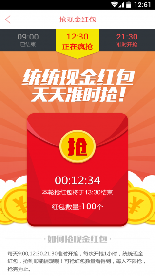 【现金红包,天天抢】现金红包天天准时开抢,每人不限数量,抢完为止。抢到就能提现哦!