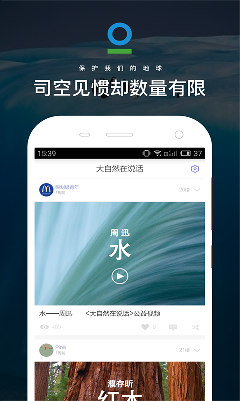 大自然公益社区是一款专注于公益事业的服务平台,这里聚集了来自全国各地的公益事业爱好者,用户可以通过app观看丰富的公益视频,了解公益咨询,让大家一起携手保护我们的地球。