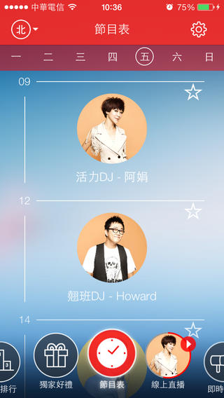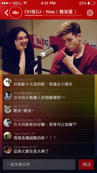 想听什么歌?有什么话想讲?有话想告诉你的偶像?实时聊天室让你直接LIVE参与节目内容。