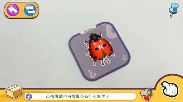 当把动物卡和场景卡同时放在摄像头的取景范围内时,动物就会出现在自己习惯生长的自然环境里,这样就可以把动物们送回家了!