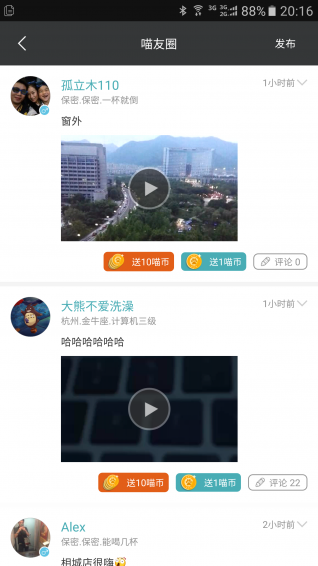 1、首页的举手功能,主推场内概念,在娱乐现场举起手,就能让别人轻松找到你,上传的视频增添了强烈的现场感,同时还能送视频上传人喵币和聊天进行互动。2、在现场可以让每个钟情夜场的人,轻松找到身边有哪些夜场在发布好玩的活动,有多少人在场内。