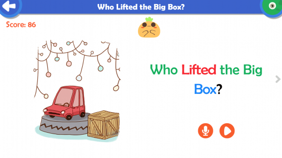 智能语音评分逐句跟读,智能评分。在跟读和闯关模式中,对用户读音智能评分,对每个单词的读音准确性进行颜色标注,引导孩子努力达到最准确的发音。