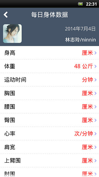 3.学员:教练可以对学员进行个人资料管理,记录每天多达50种的身体指数,并通过曲线图了解增减趋势;