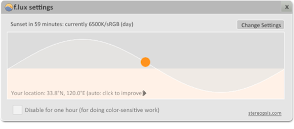 相信有很多人无论是工作还是娱乐,都已经离不开个人电脑或智能移动设备的屏幕了。根据这样的情况,很多厂商为自家的设备都加入了“亮度自动调节”的功能,这在一定程度上可以减少屏幕光给眼睛带来的伤害。说太多相关原理没有太大意义,要是没有实际效果,那也不过是在炒作概念。如果你的眼睛经常被屏幕搞得疲惫不堪的话,可以试用一下这款软件。它会在夜里将屏幕的颜色调节成偏黄色,一开始你可能会觉得有点突兀,不过在一段时间的适应过后,或许你的眼睛会对你说“谢谢”。