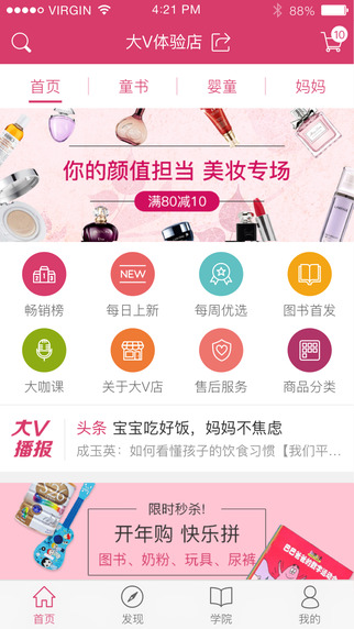 1、大V店召集各路大神,不断献上新鲜内容,帮您花样分享不重样儿;2、哈爸呕心沥血亲自指导,让界面布局大改,只为娘娘满意!