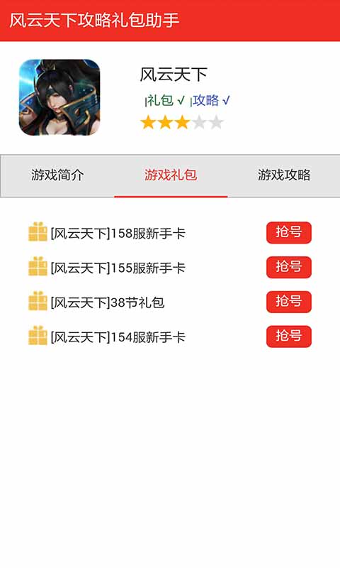 风云天下攻略礼包为广大爱好这款游戏的粉丝们提供全面的助手APP,帮助玩家在短的时间内,熟悉这个游戏。同时助手里提供了新的游戏资料,还提供了游戏大神们的心得攻略。还提供了免费激活码哦!最后还为玩家提供限时折扣优惠活动,现在登录注册的玩家可以享受折扣优惠了!具体的请点击下载我吧!