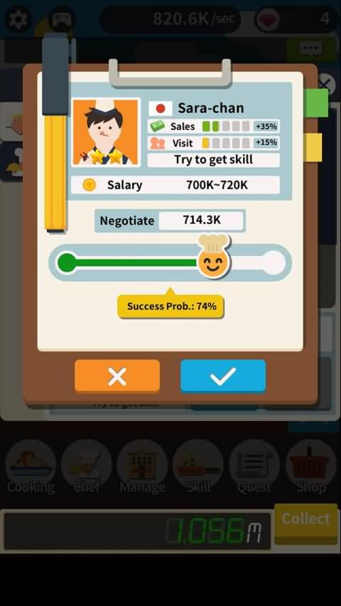 《餐厅之王 Restaurant King》是一款简单的餐厅模拟经营题材的手机游戏,游戏中玩家将会还是一家餐厅的管理者,你需要投身于伟大的餐饮事业啦。游戏整体可以说结合了放置和模拟经营,两者各占一半,可以看到餐馆实实在在地建起来,还是很有成就感的!开自己的主题餐厅,把每一层建成不同的风格。选择您最喜爱的厨师并洽谈薪水。不同的厨师有不同的技能和专业!挑选你的梦之队!