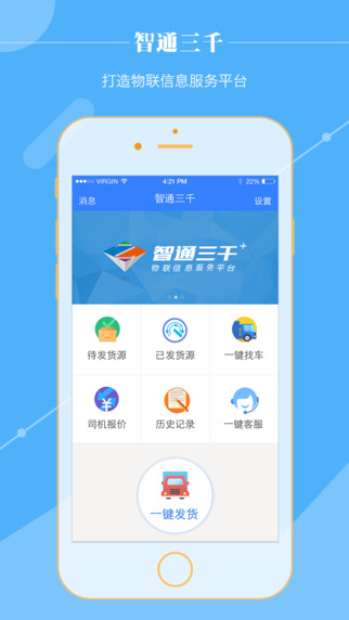 智通三千app是一款物联信息服务平台。该软件以“互联网+物流”的理念、采取O2O的商业模式,以线上平台、线下服务的方式,颠覆物流行业传统经营方式,帮助企业和车辆线上面对面直接交易,绕开物流中介环节,从根本上帮助企业降低物流费用,同时帮助车辆提高配货效率和收益。【软件特点】