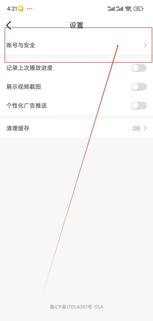 3. 在设置界面里,点击“账号与安全”选项。