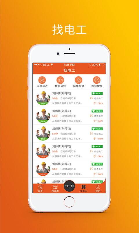 依托平台的“找电工”派单,实现快速接单,订单无忧收入不愁