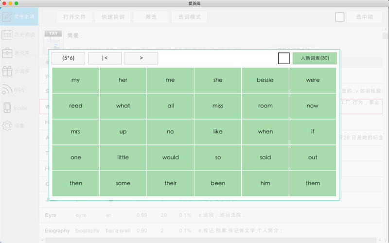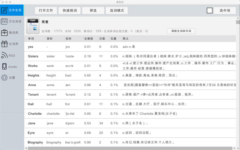 5.建立自己的熟词词汇库,在使用过程中逐步充实词库。越接近自己真实的词汇量,原著分析提取到的生词就越精准。