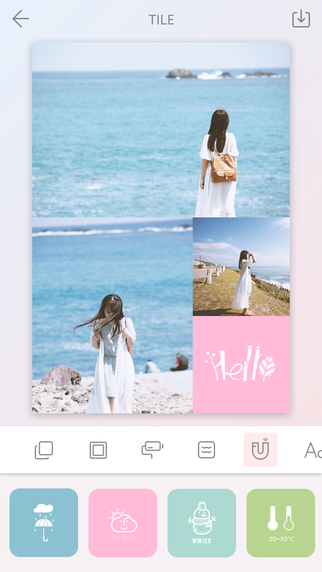 通过布局,磁贴,滤镜等元素重新组合你的照片,充满乐趣!拼图酱用充满趣味和创意的磁贴代替老式的贴纸,磁贴中一个个生动的形象在各种可口颜色的搭配下令你的照片焕然一新,充满元气。