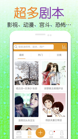 3、无论你是小清新,还是重口味,都能找到适合你的剧本,3分钟即可完成一个原创作品。