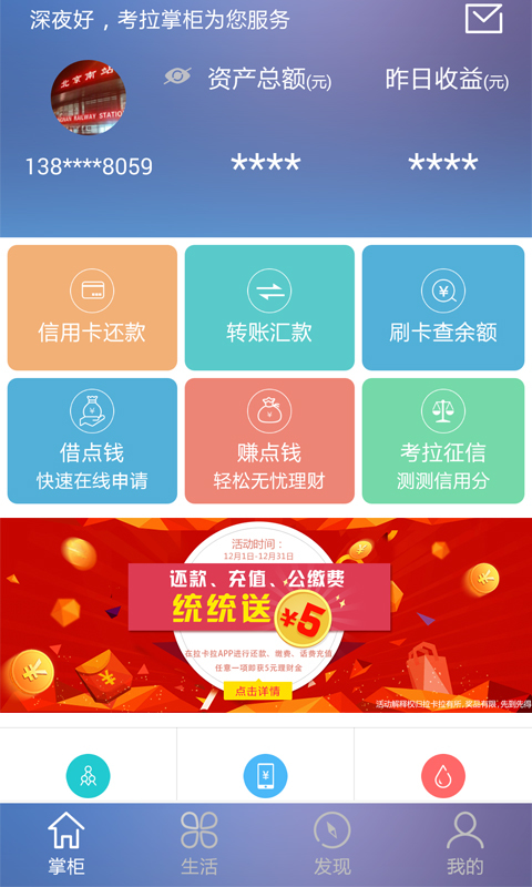 拉卡拉钱包app是一款手机钱包支付软件,通过拉卡拉钱包app你可以享受到1元起投,高收益低风险让你轻松赚钱,同时还有还款、缴费、转账等各种实用功能。【软件特点】