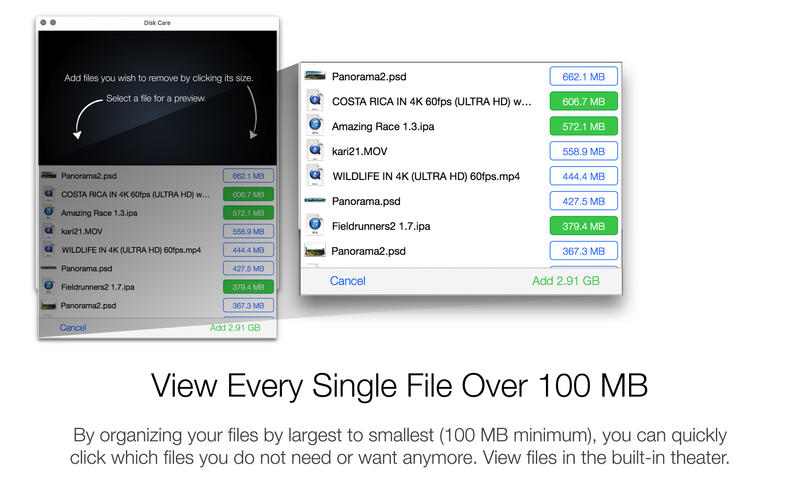 此外,在一个点击,查看大文件超过100MB的最大到最小的组织。