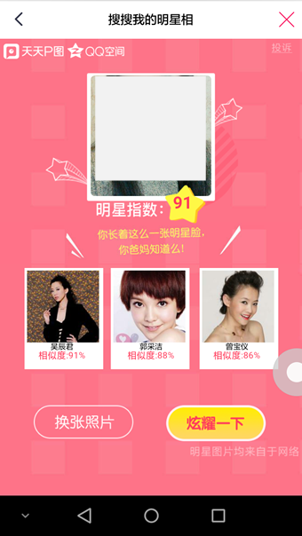 天天P图app除了搜搜我的明星相功能外,还有更多玩法,不妨一一尝试一下。从全民cos武媚娘到全民变妆大圣,天天P图掀起一个又一个变妆热潮,长期位居中国大陆、香港、台湾、澳门、马来西亚、越南等多个国家和地区AppStore排行榜前列。